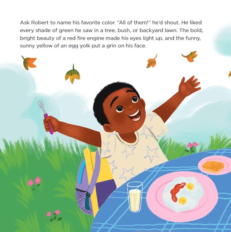 Robert is an elementary school student. He is creative and notices all the many colors around him, from “every shade of green he saw in a tree” to “the sunny yellow of an egg yolk.” Mrs. Murphy is the teacher in Robert’s diverse and multicultural classroom. She is an “everything has a place” type of teacher, believing that “things need to be neat and in order, in order to learn neat, new things.”